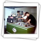 Harald bemalte noch alte Kunststofffässer in die wir später noch Alustreifen klebten und unten am Boden Ventilatoren legten, so dass es aussah als würden die Fässer brennen. Ein Diaprojektor wurde noch aufgebaut, damit wir, wenn Dieter die Filme wechselte, Dias zeigen konnten. Das waren dann viele alte Fotos, die sich während der Zeit angesammelt hatten, da wir ja öfter Dias bei unseren Auftritten gezeigt hatten. Abmischen sollte „Spezi“, ein Freund von Jochen und Dieter. Er kam aus Bad Münstereifel und machte selber Musik.